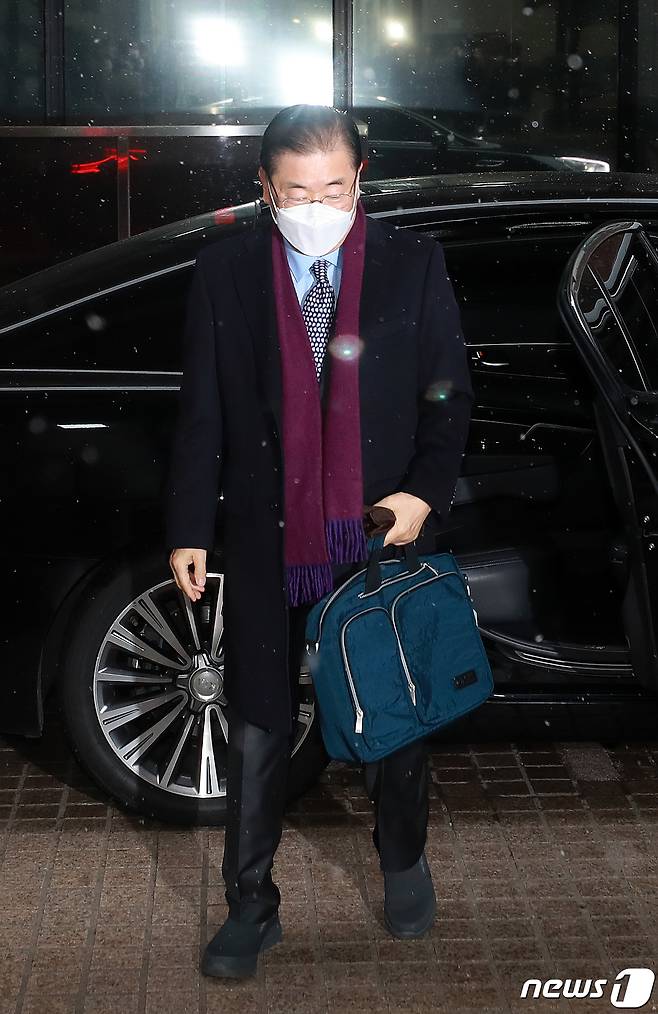 (서울=뉴스1) 구윤성 기자 = 정의용 외교부 장관 후보자가 28일 오전 서울 종로구에 마련된 인사청문회 준비사무실로 출근하고 있다. 2021.1.28/뉴스1