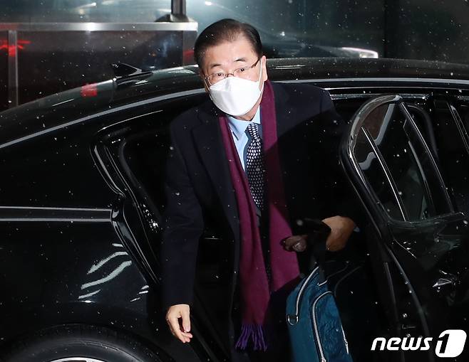 (서울=뉴스1) 구윤성 기자 = 정의용 외교부 장관 후보자가 28일 오전 서울 종로구에 마련된 인사청문회 준비사무실로 출근하고 있다. 2021.1.28/뉴스1