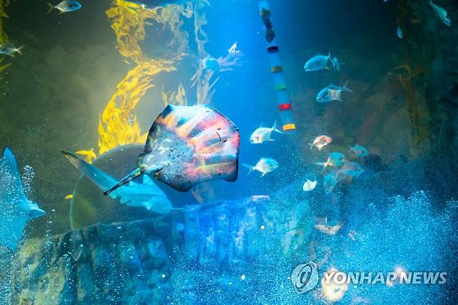 (서울=연합뉴스) 롯데월드 아쿠아리움이 '피딩스테이션'을 선보인다고 28일 밝혔다. 피딩스테이션은 해양생물이 투명한 관을 통해 내려오는 먹이를 먹는 모습을 자세하게 관찰할 수 있는 생태설명회다.