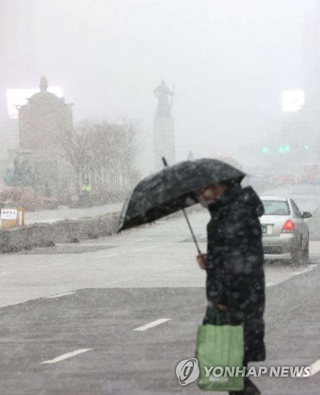 (서울=연합뉴스) 최재구 기자 = 서울과 경기 북부에 대설주의보가 내려진 28일 서울 도심에 눈이 내리고 있다. 2021.1.28