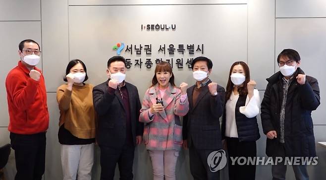 사진은 서남권센터 앞에서 기념 촬영을 하는 센터 및 서울시, 한국노총 관계자들. 2021.1.28