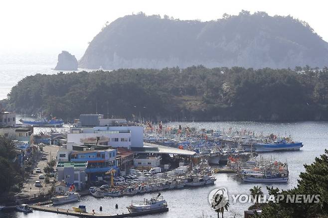 (서귀포=연합뉴스) 박지호 기자 = 제주도 앞바다 전역에 28일 정오를 기해 풍랑주의보가 내려진 가운데 이날 오전 어선들이 서귀포항으로 대피하고 있다. 2021.1.28