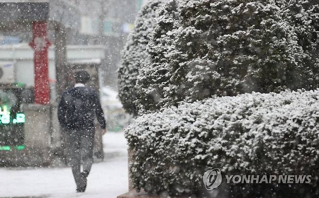 (서울=연합뉴스) 김인철 기자 = 서울과 경기북부에 대설주의보가 내려진 28일 오전 서울 중구 을지로 일대에 눈이 내리고 있다. 2021.1.28