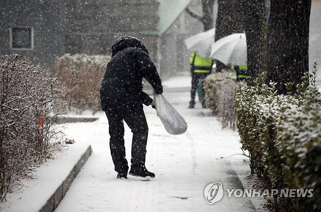 (서울=연합뉴스) 박동주 기자 = 서울과 경기북부에 대설주의보가 내려진 28일 오전 서울 종로구 청운효자동 주민센터 인근에 눈이 내리고 있다. 2021.1.28
