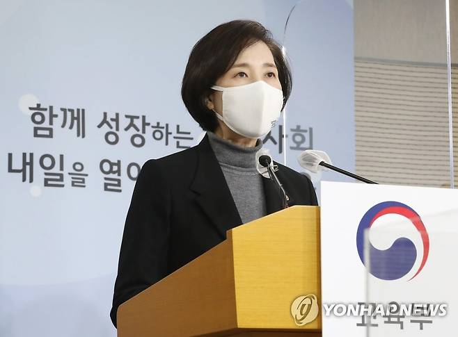 (세종=연합뉴스) 김주형 기자 = 유은혜 사회부총리 겸 교육부 장관이 28일 오전 세종시 정부세종청사에서 2021학년도 학사 및 교육과정 운영 지원방안 등을 발표하고 있다. 2021.1.28