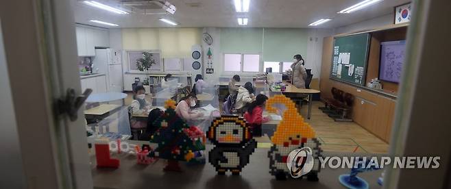 (서울=연합뉴스) 최재구 기자 = 유은혜 사회부총리 겸 교육부 장관이 2021학년도 학사 및 교육과정 운영 지원방안 등을 발표한 28일 서울 노원구 용원초등학교에서 학생들이 수업하고 있다. 2021.1.28