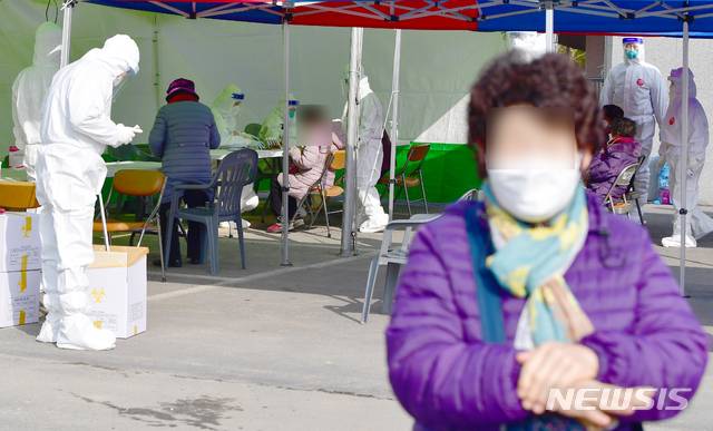 코로나19 전수검사 받는 사평 주민들