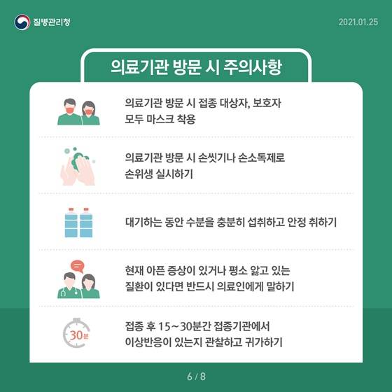 · 의료기관 방문 시 접종 대상자, 보호자 모두 마스크 착용
