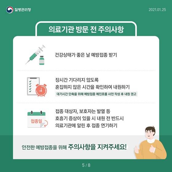 ☞ 안전한 예방접종을 위해 주의사항을 지켜주세요!