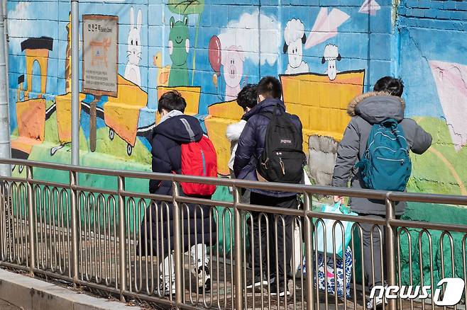 (서울=뉴스1) 유승관 기자 = 28일 서울시내 한 초등학교에서 학생들이 하교하고 있다.
