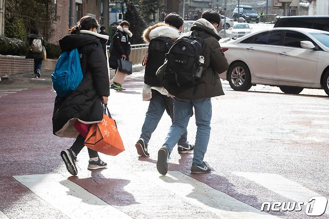 (서울=뉴스1) 유승관 기자 = 28일 서울시내 한 초등학교에서 학생들이 하교하고 있다.