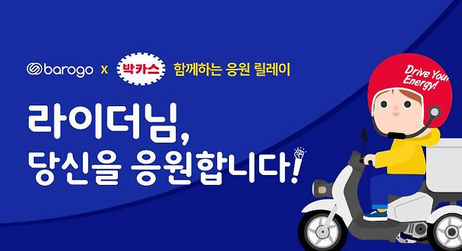 근거리 물류 IT 플랫폼을 운영하는 스타트업 바로고는 28일 박카스와 바로고 라이더 대상 '힘내라 대한민국! 힘내라 라이더!' 전국 단위 감사 이벤트를 진행한다.