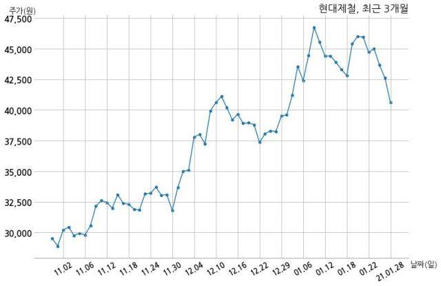 한편, 현대제철의 15시 15분 현재주가는 40,600원으로 직전 거래일 대비 2,000원(-4.69%) 하락이며, 거래량은 1,338,091주이다.