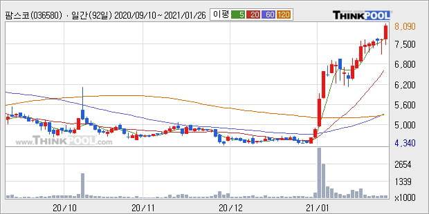 '팜스코' 52주 신고가 경신, 단기·중기 이평선 정배열로 상승세