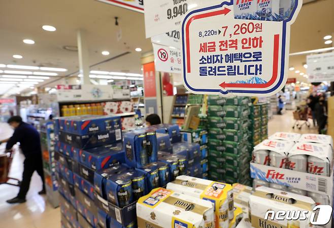 (서울=뉴스1) 오대일 기자 = 술·담뱃값 인상 소식을 놓고 갑론을박이 이어지는 가운데 28일 오후 서울의 한 대형마트에서 고객들이 주류를 고르고 있다. 정부가 국민 건강 증진을 위해 담배 가격을 인상하고 소주 등 주류에도 건강증진부담금을 부과하는 방안을 검토하고 있는 것으로 알려졌지만 민주당은 이날 관련 보도가 사실이 아니라고 부인했다. 2021.1.28/뉴스1