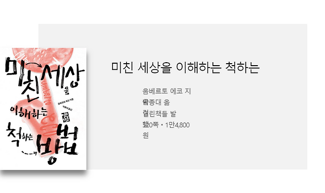 물론 책이 모든 문제에 대한 딱 떨어지는 해결책을 제시하는 것은 아니다. 에코 스스로도 “이런 경향을 어떻게 해석해야 할지는 나도 아직 제대로 알지 못한다”고 고백하기도 한다. 그래도 이 미친 세상 속에서 나아갈 길이 보이지 않을 때, 이 책을 보며 한번쯤 이렇게 외쳐보는 것만으로도 속이 시원해질지도 모른다. “에코 형! 세상이 왜 이래!”