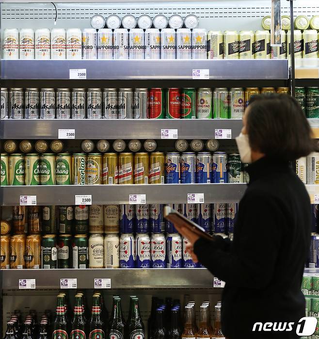 (서울=뉴스1) 오대일 기자 = 28일 오후 서울의 한 대형마트에서 고객들이 수입 맥주를 고르고 있다. 관세청과 주류업계에 따르면 지난해 일본 맥주 수입액은 566만 8천 달러로 전년 대비 85.7% 감소했다. 2년 만에 1위에서 9위로 추락한 결과로, 소비자들의 일본 제품 불매운동이 빚어낸 결과다. 2021.1.28/뉴스1