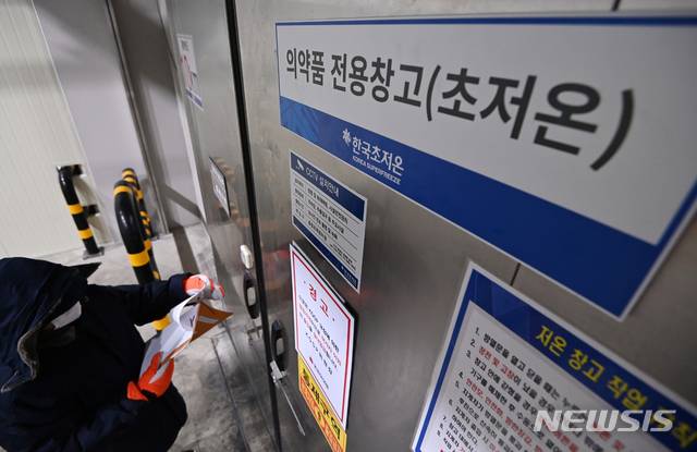 [평택=뉴시스] 김종택기자 = 정부가 신종 코로나바이러스 감염증(코로나19) 예방 백신 접종 세부 시행 계획을 발표한 28일 오후 경기도 평택시 오송면 한국초저온 물류센터에서 방한복을 입은 직원이 코로나19 백신 초저온 보관소를 점검하고 있다. 2021.01.28.