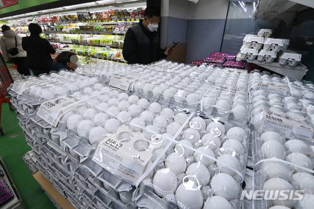 [오산=뉴시스] 김종택기자 = 고병원성 조류 인플루엔자(AI) 확산으로 국내 계란 공급 부족 상황이 이어져 수입 계란이 시중에 유통된 28일 오후 경기도 오산시 한 마트에서 소비자들이 미국산 계란을 구입하고 있다. 2021.01.28.