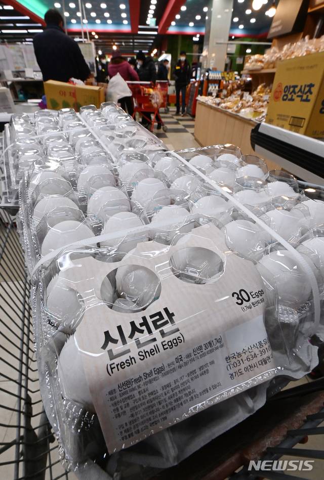[오산=뉴시스] 김종택기자 = 고병원성 조류 인플루엔자(AI) 확산으로 국내 계란 공급 부족 상황이 이어져 수입 계란이 시중에 유통된 28일 오후 경기도 오산시 한 마트에서 소비자들이 미국산 계란을 구입하고 있다. 2021.01.28.