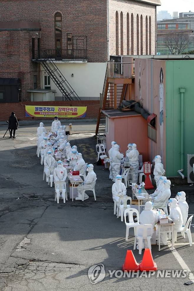 (광주=연합뉴스) 정회성 기자 = 28일 오전 광주 서구 안디옥교회 주차장에 마련된 신종 코로나바이러스 감염증(코로나19) 임시 선별진료소가 한산하다. 방역 당국은 최근 안디옥교회와 관련해 31명(오후 2시 기준)의 확진자가 잇달아 발생하자 임시 선별진료소를 마련했다. 오전 10시부터 2시간 동안 운영된 해당 선별진료소를 찾은 사람은 54명으로 집계됐다. 2021.1.28