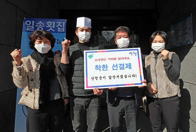 [산청=쿠키뉴스] 강연만 기자 = 경남 산청군(군수 이재근)이 코로나19 장기화로 위기에 처한 소상공인을 위해 '착한 선결제' 캠페인을 전개한다.