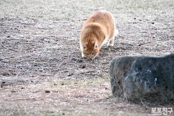 그리고 고양이 닮은 동물도 고양이인지 낯선 모습에 경계하며 산길을 내려왔다.