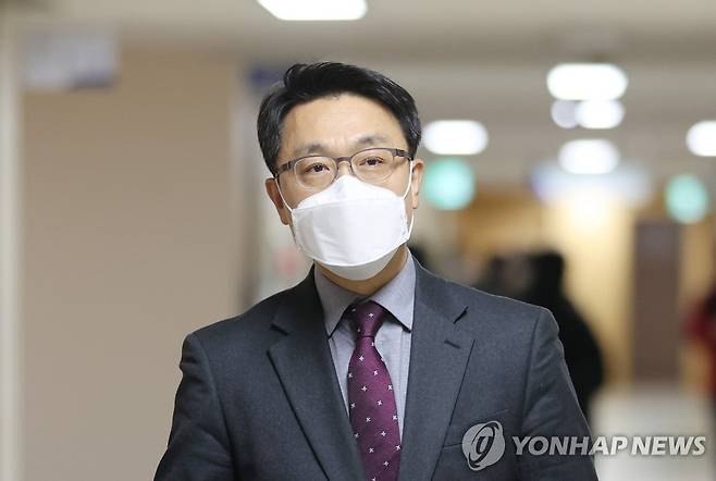 (서울=연합뉴스) 임화영 기자 = 김진욱 고위공직자범죄수사처 처장이 28일 오후 정부서울청사 브리핑실에서 차장과 수사처 검사 인선 등에 관한 입장을 발표하기 위해 이동하고 있다. 2021.1.28