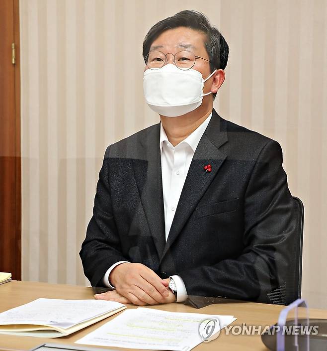 (서울=연합뉴스) 전해철 행정안전부 장관이 28일 오후 정부서울청사에서 비대면 온라인 영상회의 시스템을 통해 열린 '2021년 제1차 정부혁신추진협의회'에서 인사말 하고 있다. 2021.1.28