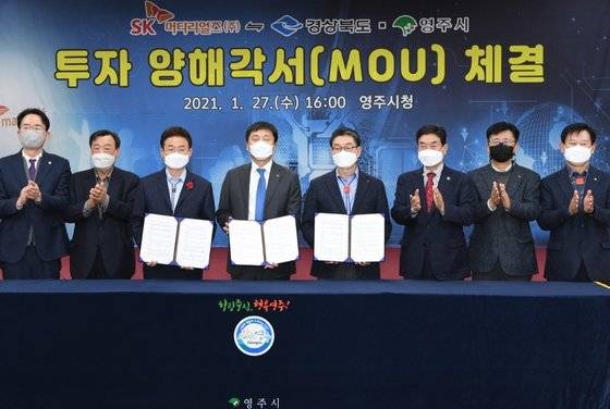 경상북도와 영주시는 27일 영주시청 강당에서 이철우 도지사와 장욱현 영주시장, 이용욱 SK머티리얼즈(주) 대표이사가 참석하여 SK머티리얼즈㈜와 반도체․디스플레이용 소재 제조공장 증설 투자를 위한 투자양해각서(MOU)를 체결했다.