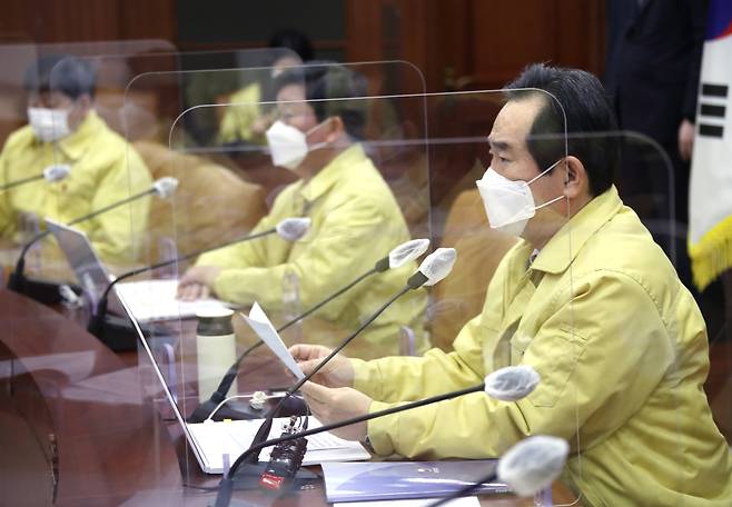 | ▲ 정세균 국무총리가 22일 오전 정부서울청사에서 열린 신종 코로나바이러스 감염증(코로나19) 대응 중앙재난안전대책본부(중대본) 회의를 주재하고 있다. |