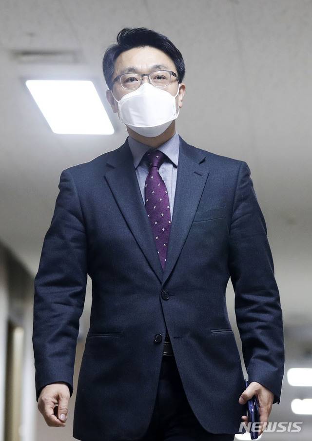 [서울=뉴시스]홍효식 기자 = 김진욱 초대 고위공직자범죄수사처(공수처) 처장이 28일 오후 서울 종로구 정부서울청사 브리핑룸에서 헌법재판소 결정 관련 브리핑을 하기 위해 입장하고 있다. 헌법재판소는 이날 공수처의 설립과 운영 근거를 정한 법률이 헌법에 위배되지 않는다고 판결했다. 2021.01.28. yesphoto@newsis.com
