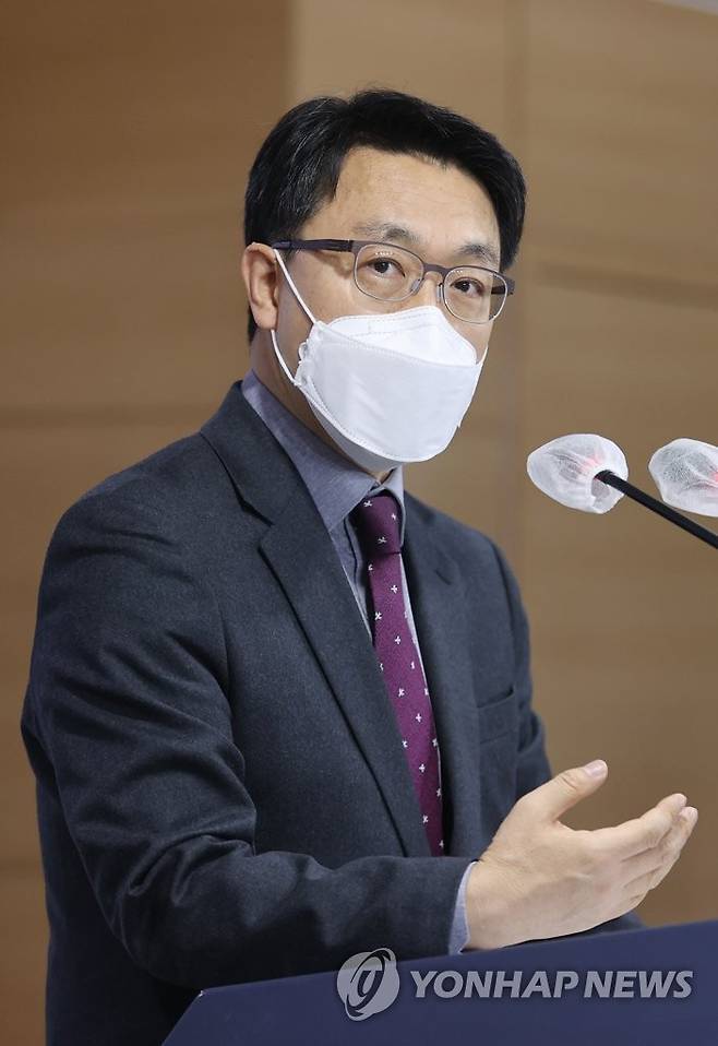 (서울=연합뉴스) 임화영 기자 = 김진욱 고위공직자범죄수사처 처장이 28일 오후 정부서울청사 브리핑실에서 차장과 수사처 검사 인선 등에 관한 입장 발표를 하고 있다. 2021.1.28