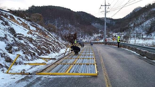 사진은 쓰러진 구조물. 2021.1.28 [강원도소방본부 제공. 재판매 및 DB 금지]