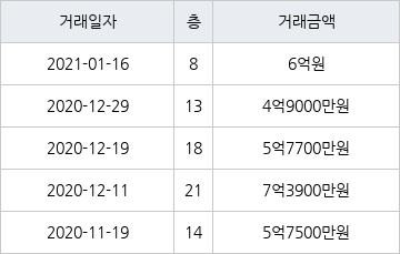 국토교통부 실거래가 공개시스템에 따르면 지난 2021년 1월 16일 경기도 용인시 기흥구 공세동 공세대주피오레2단지 8층 전용면적 150㎡형이 6억원에 거래됐다. 지난 2021년 1월 16일 같은 면적형인 8층 물건이 6억원에 실거래된 것과 비교해 같은 가격이다.