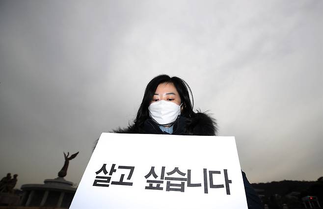| ▲ 28일 오전 서울 청와대 분수대 앞에서 17개 중소상인시민단체 집합제한·손실보상 관련 요구사항 전달 합동 기자회견이 열리고 있다. |