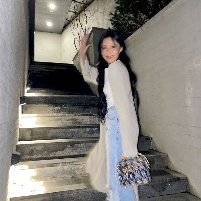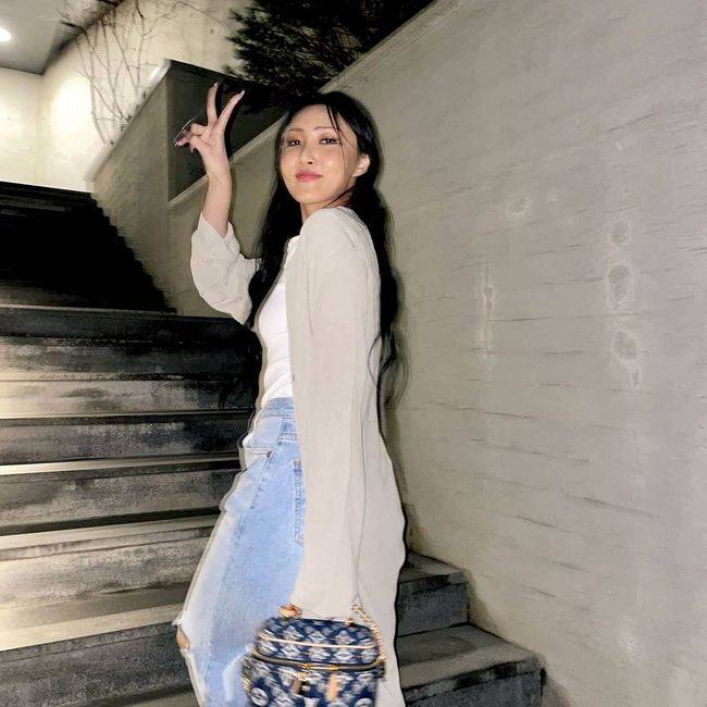 사진 속 마마무 화사는 한 명품 브랜드 가방을 든 채 어디론가 향하고 있는 모습. 화사는 카메라를 향해 손을 흔들며 매력적인 웃음을 짓고 있다.