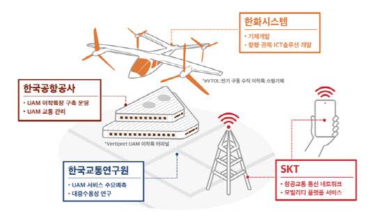 또한 한국공항공사는 UAM 이착륙장(버티포트·Vertiport)의 구축·운영과 UAM 교통관리 분야를, 한화시스템은 UAM 기체 개발 및 항행·관제·ICT 솔루션 개발 등을 담당한다.