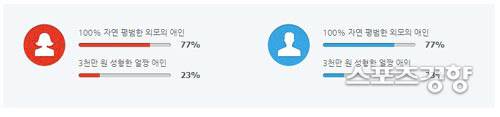 소셜 데이팅 앱 정오의데이트가 미혼남녀 총 2만 3399명을 대상으로 ‘3000만원 성형한 얼짱 애인 VS 100% 자연 평범한 외모의 애인’을 주제로 설문조사를 시행했다.