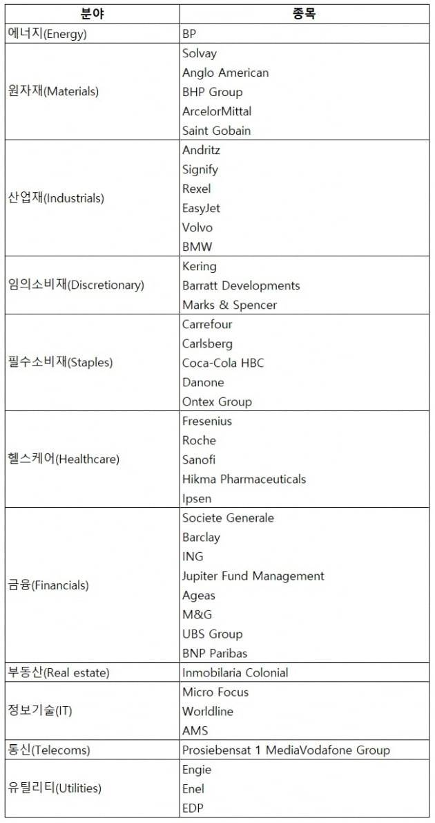 다음은 이 팀이 추천하는 유럽 종목을 정리한 것이다.