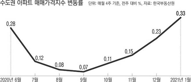 수도권 아파트값, 한 주 새 0.33% 올라..주간 상승폭 또 '신기록'