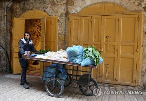 epa08971086 A Palestinian vendor sits in front of his shop in the old city of the West bank town of Hebron, 28 January 2021. EPA/ABED AL HASHLAMOUN