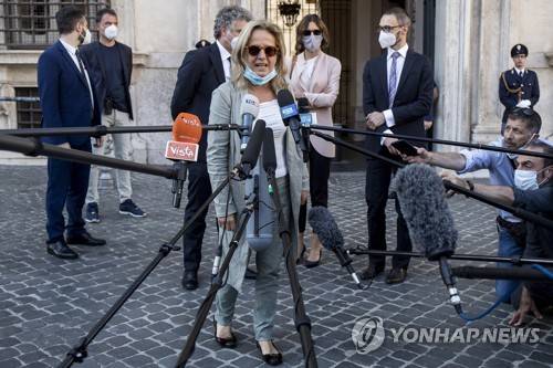 FILE - In this June 12, 2020 file photo, lead prosecutor Maria Cristina Rota talks with reporters as the leaves Palazzo Chigi premier's office, in Rome. Prosecutors from northern Italy have traveled to Rome again Thursday, Jan. 28, 2021, to question the health minister and others as part of their broadening investigation into whether to lay any criminal blame for Italy’s horrific coronavirus toll. Back in June, Bergamo prosecutors questioned Premier Giuseppe Conte, Health Minister Roberto Speranza and other top officials about the delayed lockdown in two Bergamo towns where infections were reported in the early days of Italy’s outbreak. Bergamo subsequently became the Italy’s COVID-19 epicenter, the first in the West, registering a 571% excess mortality rate in March compared to the average of the previous five years. (Roberto Monaldo/LaPresse via AP) ITALY OUT; JUNE 12 2020 FILE PHOTO