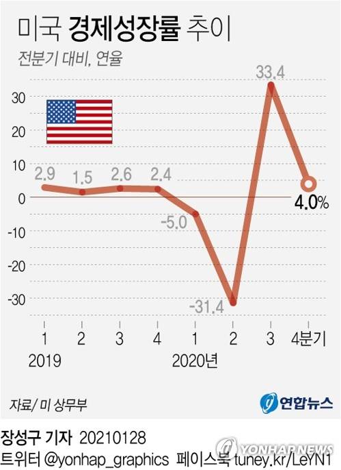 미 작년 성장률, -3.5%로 2차대전 후 최악..4분기는 4.0%↑(종합)