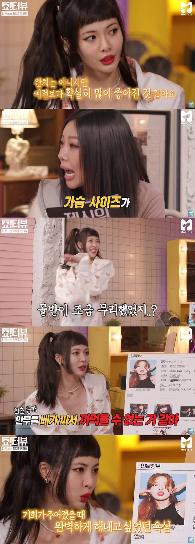 제시는 "왜 방송을 자주 안 하냐"고 물었고 현아는 "방송이 부담스럽기도 하다. 근데 일단 왜 안 불러주셨냐. ('쇼!터뷰'는) 내가 나오겠다고 해서 나온 것"이라고 밝혔다.