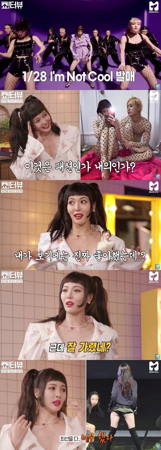 현아는 화제가 됐던 던과의 커플 내의에 대해 "던은 정말 좋아했다. 제가 받아들였을 때는 만족했다. 근데 잘 가렸다"라며 자신이 시키지 않았다고 강조했다.