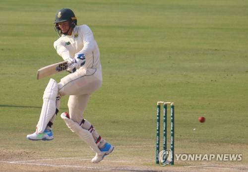 epa08971163 South African batsman Rassie van der Dussen plays a shot during the third day of the first cricket test match between Pakistan and South Africa in Karachi, Pakistan, 28 January 2021. The South African cricket squad arrived in Pakistan for their first tour consisting of two Test and three T20 matches after a 14-year break. EPA/SHAHZAIB AKBER