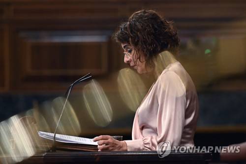 epa08971180 Spanish Treasury Minister and Government's Spokeswoman Maria Jesus Montero delivers a speech during an extraordinary plenary session at Congress of Deputies in Madrid, Spain, 28 January 2021. The Chamber is to debate, among other issues, the validation of the executive order to adopt measures of adaptation after Brexit. EPA/FERNANDO VILLAR