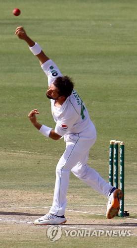 epa08971190 Pakistani bowler Yasir Shah in action during the third day of the first cricket test match between Pakistan and South Africa in Karachi, Pakistan, 28 January 2021. The South African cricket squad arrived in Pakistan for their first tour consisting of two Test and three T20 matches after a 14-year break. EPA/SHAHZAIB AKBER