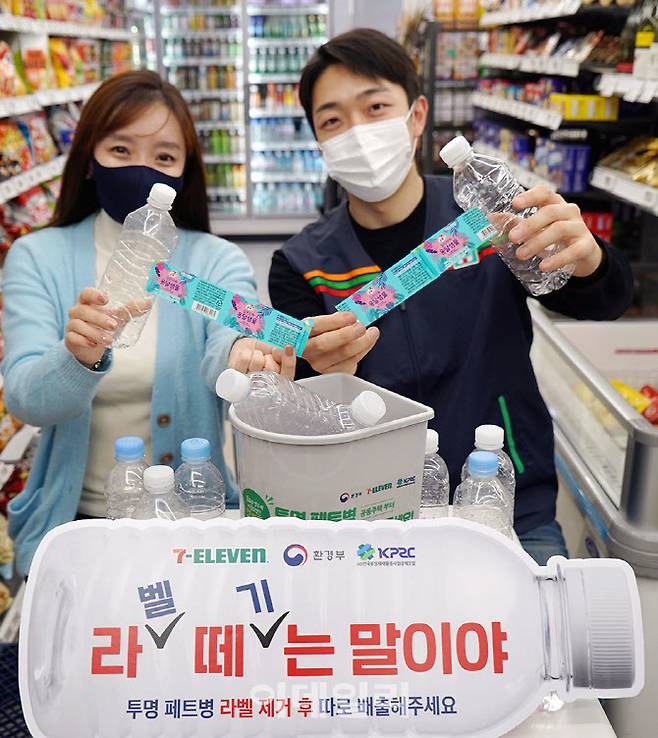 세븐일레븐은 환경부의 투명 페트병 별도 분리배출 홍보 스티커를 전국 모든 가맹점의 워크인쿨러 냉장고(WIC) 페트음료 코너에 부착하고 점포 내부에 설치되어 있는 디지털사이니지와 POS 객면화면에도 송출하여 페트병 별도 배출의 중요성을 지속적으로 알릴 예정이다. 이외에도 인증샷 및 댓글 이벤트를 진행할 예정이다. (사진=세븐일레븐)